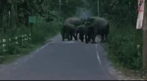 বাবুল সরকার, কামাখ্যাগুড়ি, ১১ জুন: বুধবার সন্ধ্যা নাগাদ কুমারগ্রাম ব্লকের কার্তিকার জঙ্গল সংলগ্ন এলাকায় রাজ্য সড়কে এক দল হাতির দেখা মিলল। হাতি গুলি জঙ্গল থেকে বের হয়ে সড়কের উপর দাঁড়িয়ে পড়ে। যার ফলে সড়কে যানবাহন চলাচল ও সাধারণ মানুষের যাতায়াত বন্ধ ছিল। যদিও অল্প কিছুক্ষণ পর হাতি গুলি রাস্তা পার হয়ে জঙ্গলে ঢুকে যায়। ওই দলে শাবক সহ বেশ কয়েকটি হাতি ছিল বলে স্থানীয়রা জানান। এদিন হাতির দল দেখতে এলাকায় ভিড় জমান সাধারণ মানুষ। খবর পেয়ে ঘটনাস্থলে আসেন বন বিভাগের কর্মীরা। যদিও কিছুক্ষণ পর হাতি গুলি একে একে জঙ্গলে ঢুকে যায়। এরপরই রাজ্য সড়কে যানবাহন ও সাধারণ মানুষের চলাচল স্বাভাবিক হয়। স্থানীয়রা জানান, হাতি গুলি রাজ্য সড়কের উপর বেশ কিছুক্ষণ দাঁড়িয়ে ছিল। তবে কোনও ক্ষয়ক্ষতি করেনি।